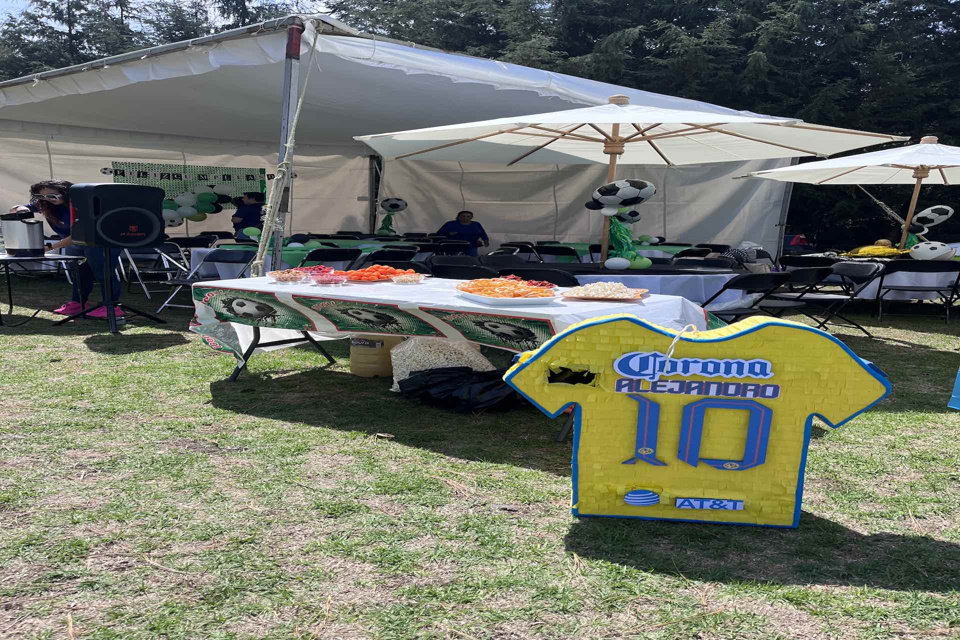 Organiza tu fiesta o evento con temática de fútbol con nosotros. Contamos con espacio hasta para 150 personas. Llámanos para mas informes y cotizaciones.
